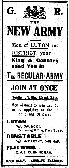 One person who was not in favour of conscription was a Luton News columnist who went under the name of Mr Jinks. In the November 12th, 1914, edition he very much regretted that the advocates of conscription were taking advantage of the falling off in the number of recruits offering themselves for enlistment "to push their pet idea for all it is worth, and for a good deal more than it is worth".
