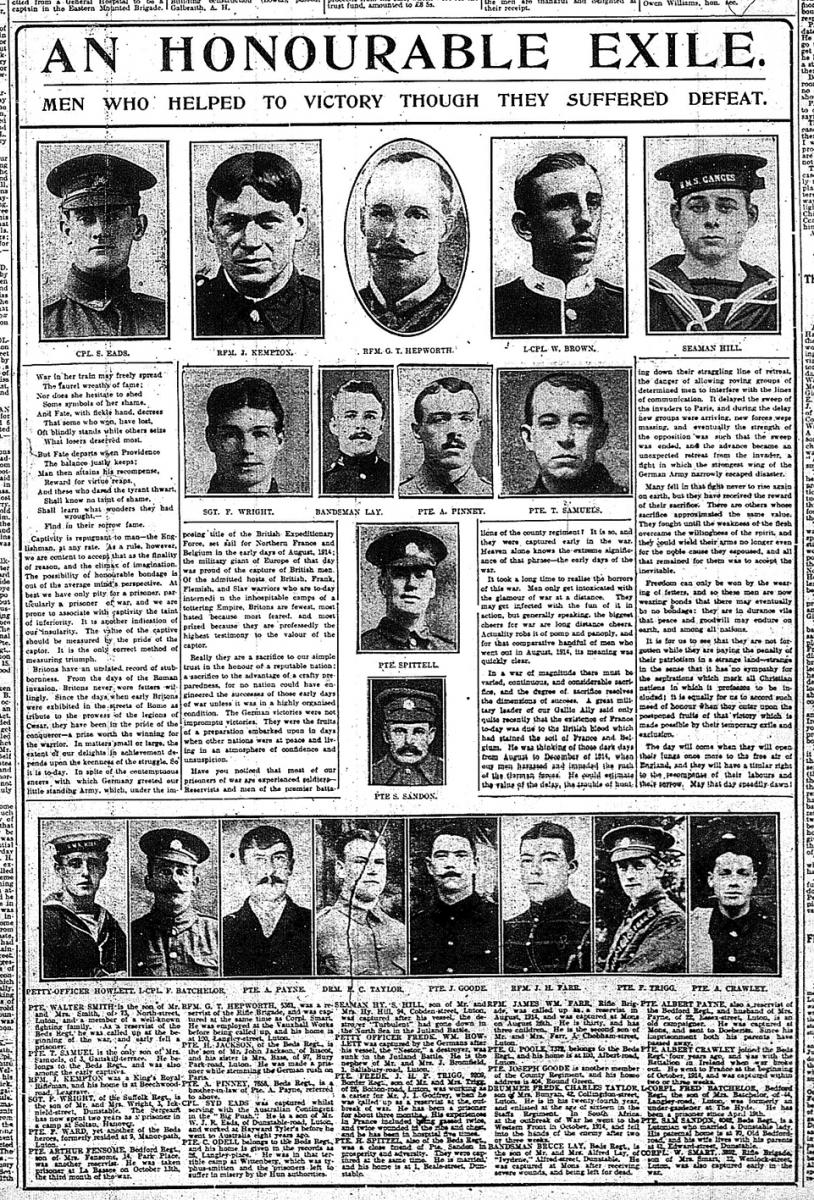 Under the heading "An honourable exile - men who helped to victory though they suffered defeat" The Luton News of Thursday, August 31st, 1916, paid its tribute to men with Luton area connections who fought for their country but had by then become prisoners of war. Twenty-five names were included along with pictures of 19 of them.