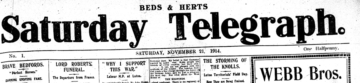 November 21st, 1914: The Beds and Herts Saturday Telegraph, a sister paper of The Luton News, was launched with the day's sport as one of its major selling points, especially Luton Town's progress in the Southern League. And the Town gave the debut paper a stunning first result with a 15-0 Cup win at home over Great Yarmouth.