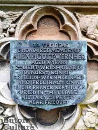 It was reported in the Luton News on 21st September 1916 of the death of 2/Lieutenant Alexander Pigott Wernher, youngest son of Sir Julius & Lady Wernher.