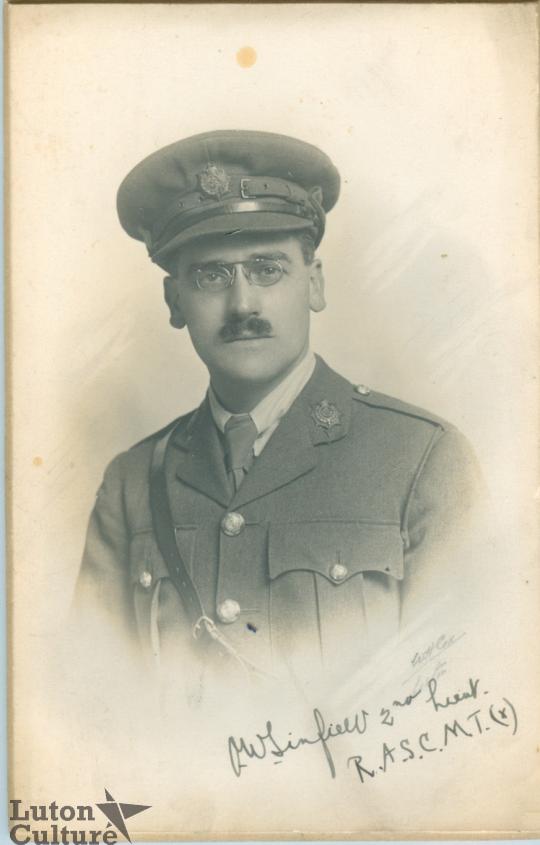 Omar W.D. Sinfield was born in 1883, and was married in 1907 to Mabel. He was a dyer of Straw Plait, and was living in Grove Road Luton.