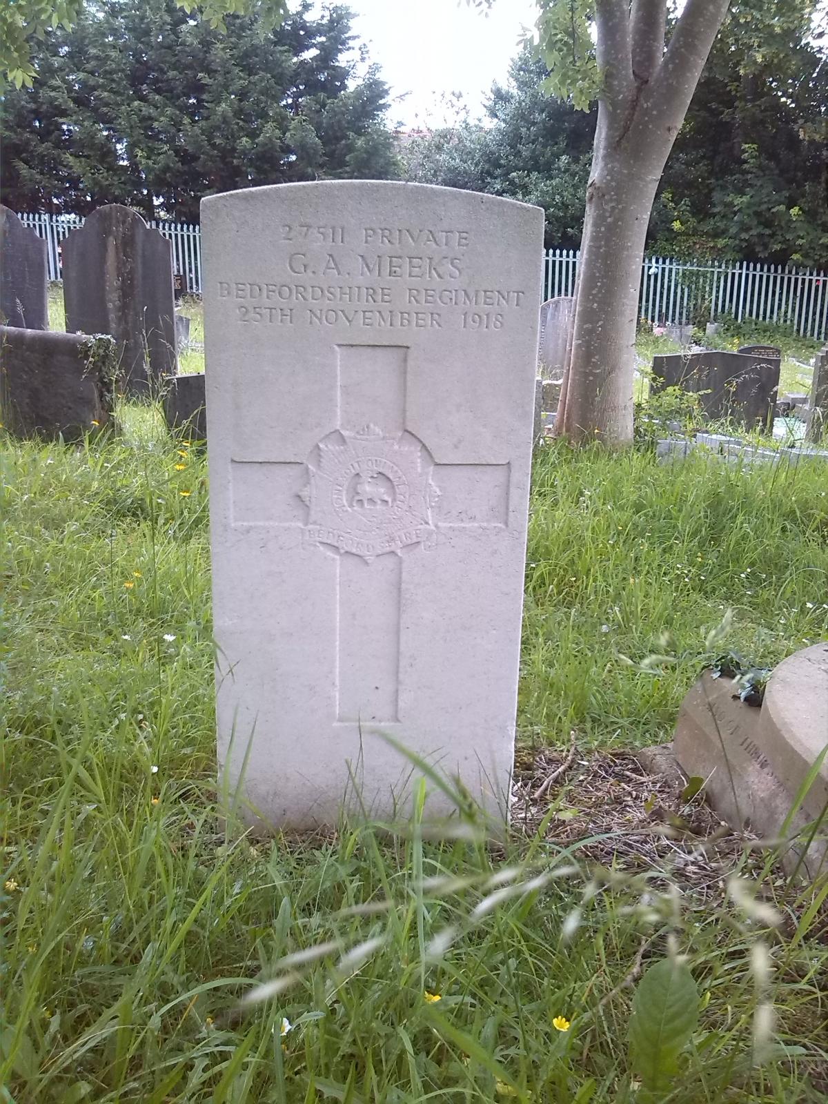 George Arthur Meeks died at Wardown Park V.A.D. Hospital in November 1918, shortly after the armistice had been declared.
