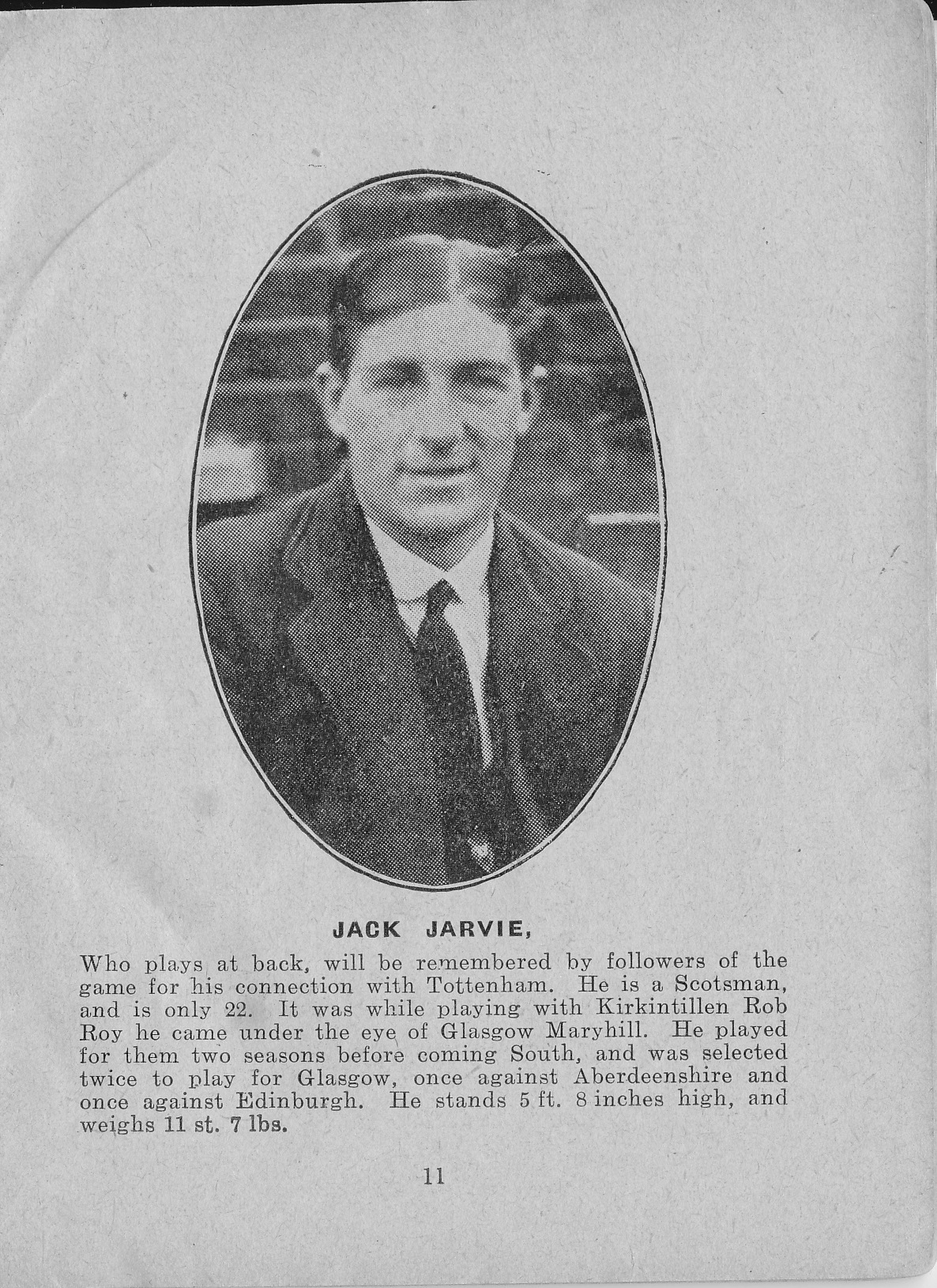 Jock Jarvie was a professional footballer for Luton Town FC in the 1912-13 and 1913-14 seasons. At the end of the 1914 season he returned to his hometown of Glasgow. He enlisted and was killed in action in January 1916, aged 27.