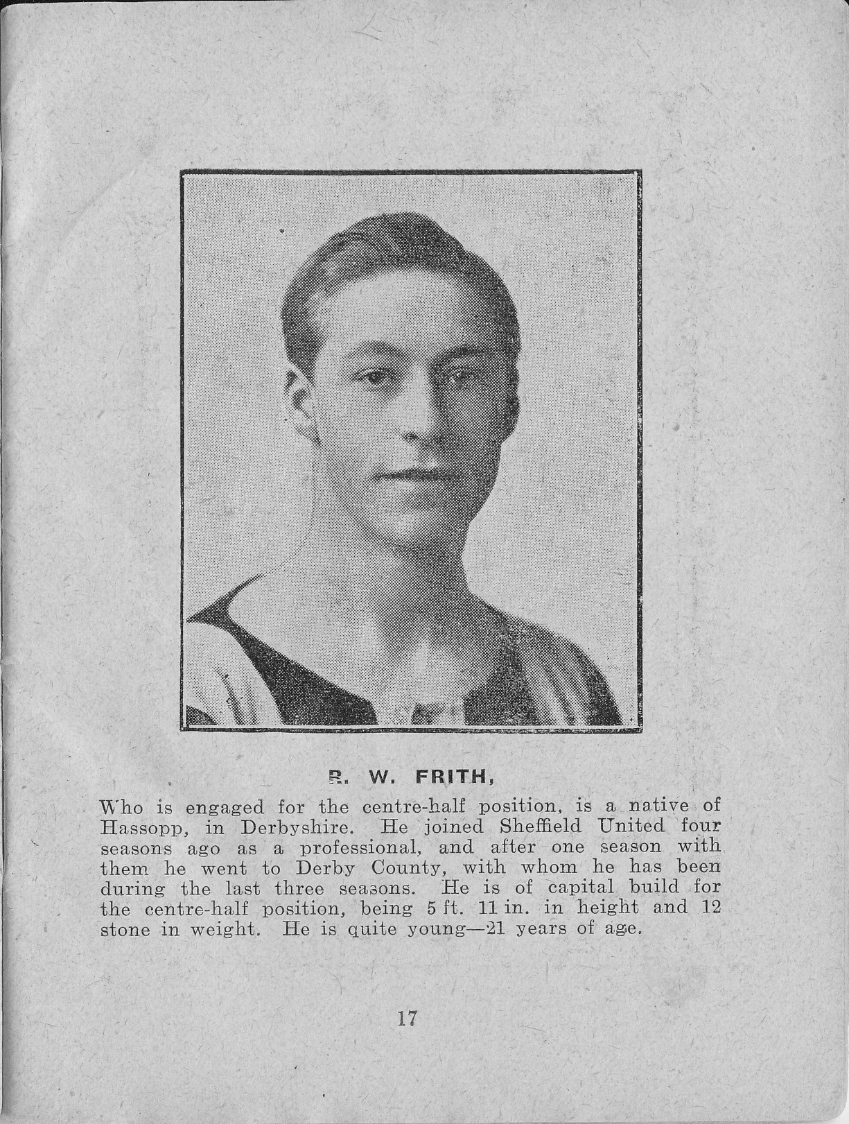 Although he was a married man with two children, the 22 year old half-back decided to follow the example of two other Luton players, Roberts and Lindley, who had signed up the day before. Frith was part of the 1913-14 promotion-winning Luton team and continued to play for Luton in the 1914-15 season whilst in training with his battalion.