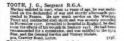 James Gwilym Tooth was a boy of 14 years when he joined the Royal Garrison Artillery as a trumpeter, following his father's footsteps into Army life.