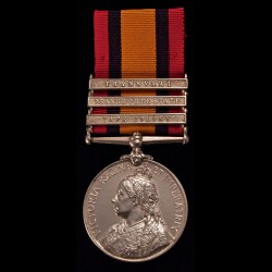 He fought in the Boar War from July to November 1900 & was awarded the Africa Medal & 3 clasps, Cape Colony, Orange Free State & Transvaal.