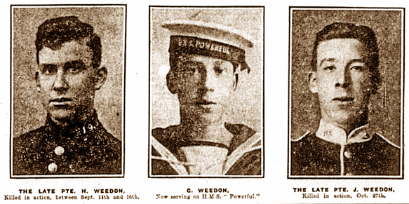 Mr and Mrs John Weedon, of 53 Wimbourne Road, had learned in October that their son, Private 14903 Horace Weedon, aged 22, serving with No. 1 Company of the 2nd Grenadier Guards, had been killed in action in France on September 14th.
