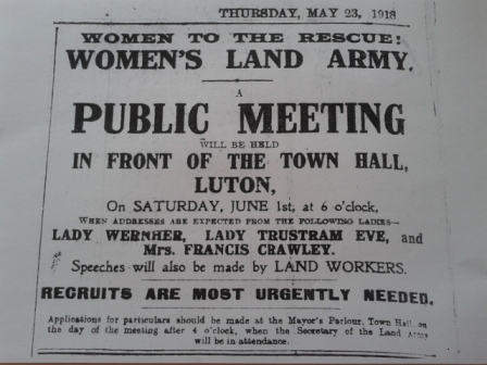 A 'Recruiting Campaign for Girls' was reported in the Luton News in May 1918 in an effort to help enrol 30,000 maidens to the land.
