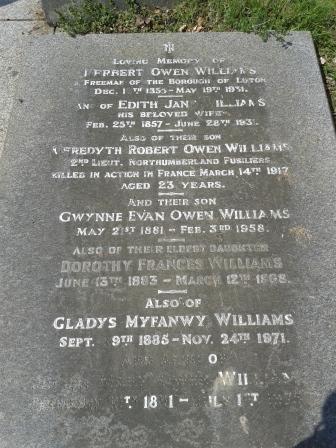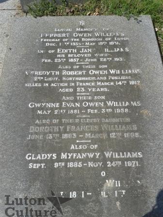 Gwynne Evan Owen Williams was born in Luton in April 1881. He was the eldest son of 6 children born to Alderman Herbert Owen & Edith Jane.