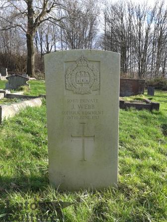 On 24th August 1914 aged 41 James attested at Bedford for the 3rd Battalion Bedfordshire Regiment. On 26 August 1916 he was transferred to the 2nd Garrison Suffolk Regiment. On his service record he is described as 5ft 8 inches tall with blue eyes & grey hair. He also has a slight scar over his left eye & varicose veins inside & above his knee caps. He is still living with his family in Back Street at this time.