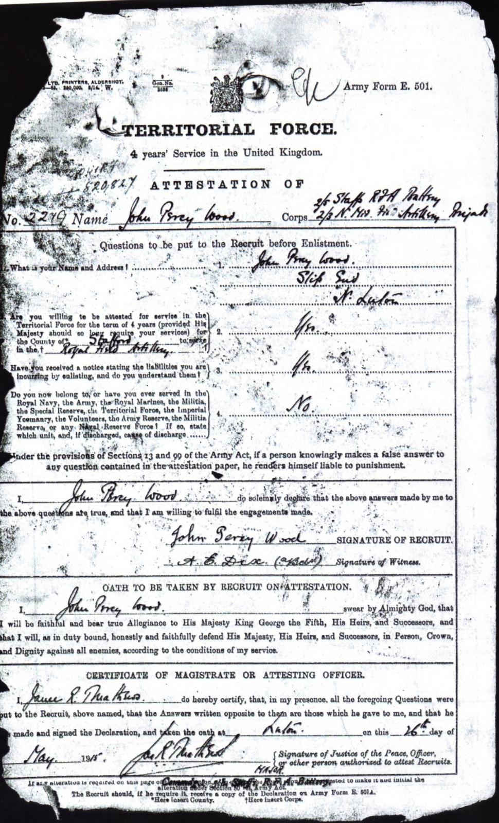 Attestation forms are forms that are filled in when an individual enlists (joins) the armed forces.