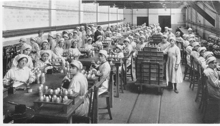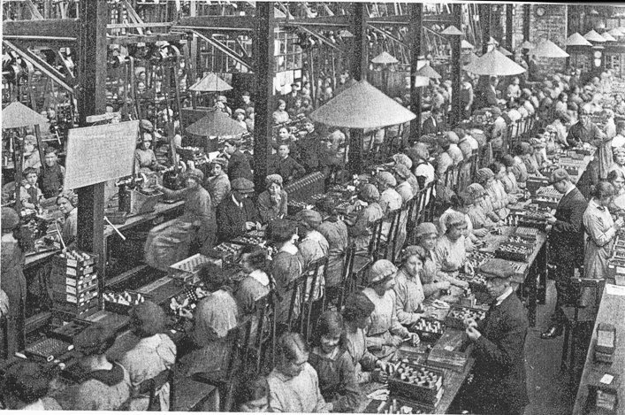 During 1916, the company was having difficulty obtaining supplies of brass due to the danger of U-boats and so the company built a foundry and stamp mill to melt down and re-use all the brass swarf from the factories. This area was also staffed entirely by women with the exception of the manager.
